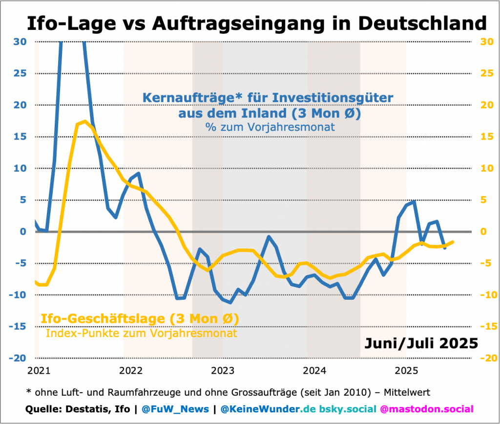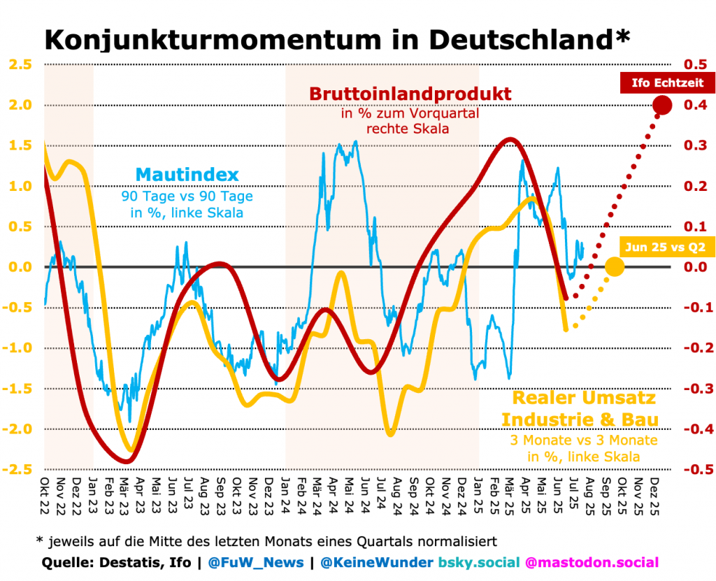 Hinweis: Die Beiträge in diesem Blog erscheinen in Kooperation mit dem Online-Magazin Makronom. Dies ein Update der ursprünlichen Version vom 30. Juli 2025: https://www.fuw.ch/deutschland-steht-im-sommer-2025-vor-einem-zyklischen-aufschwung-255669141438 Worum es hier eigentlich geht, habe ich im ersten Beitrag beschrieben: Konjunkturanalyse geht jeden an – oder warum wir einen Taktikblog der Konjunkturanalyse brauchen.